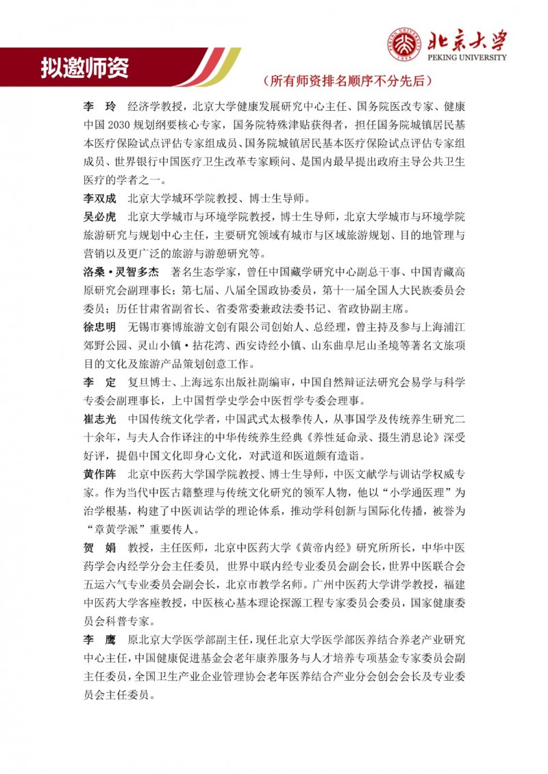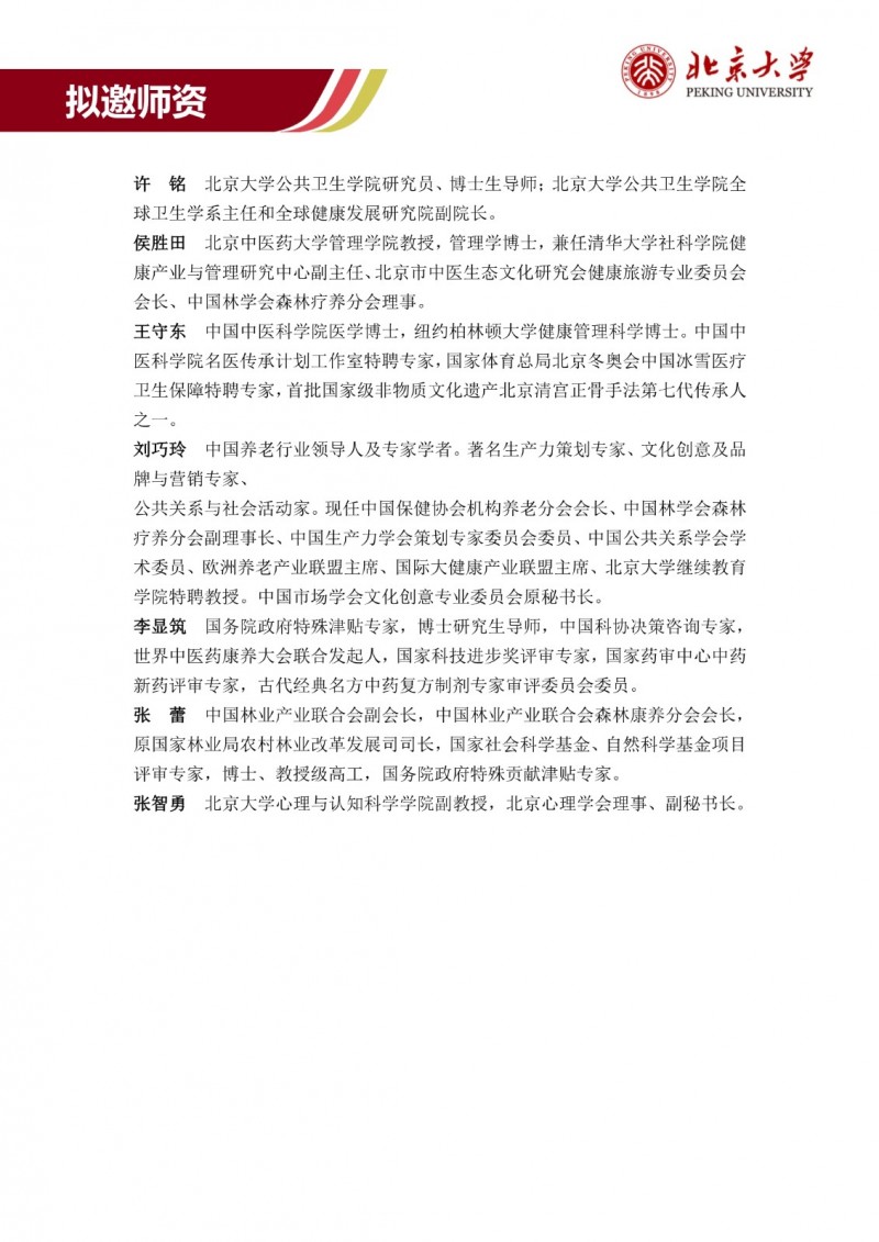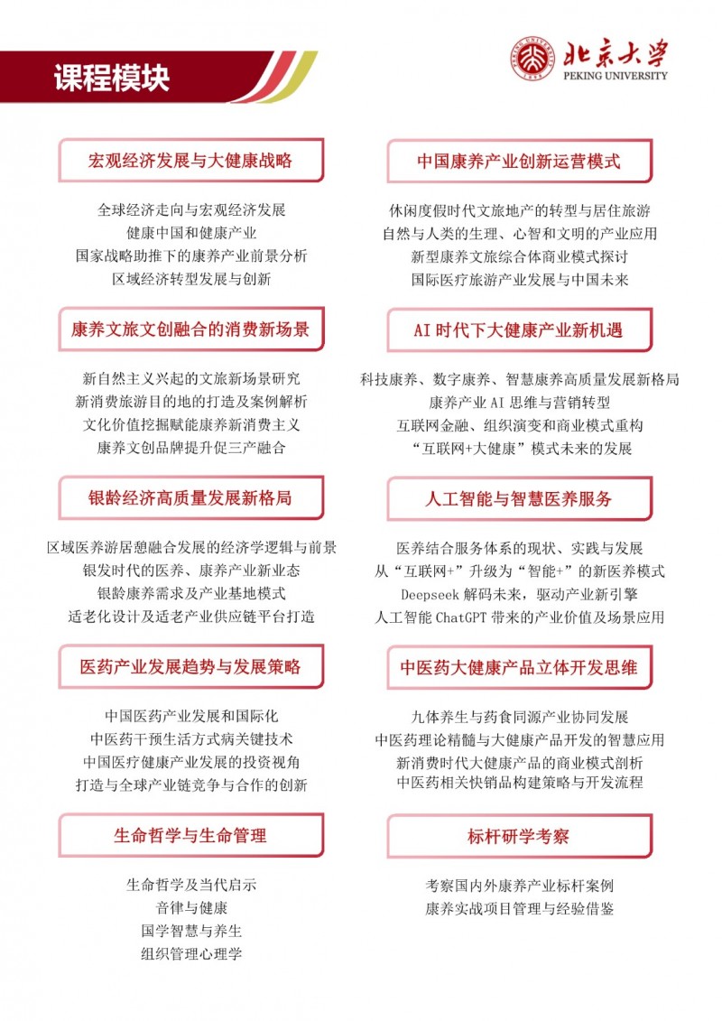 北京大学康养产业暨特色产业运营高级研修班相关课程