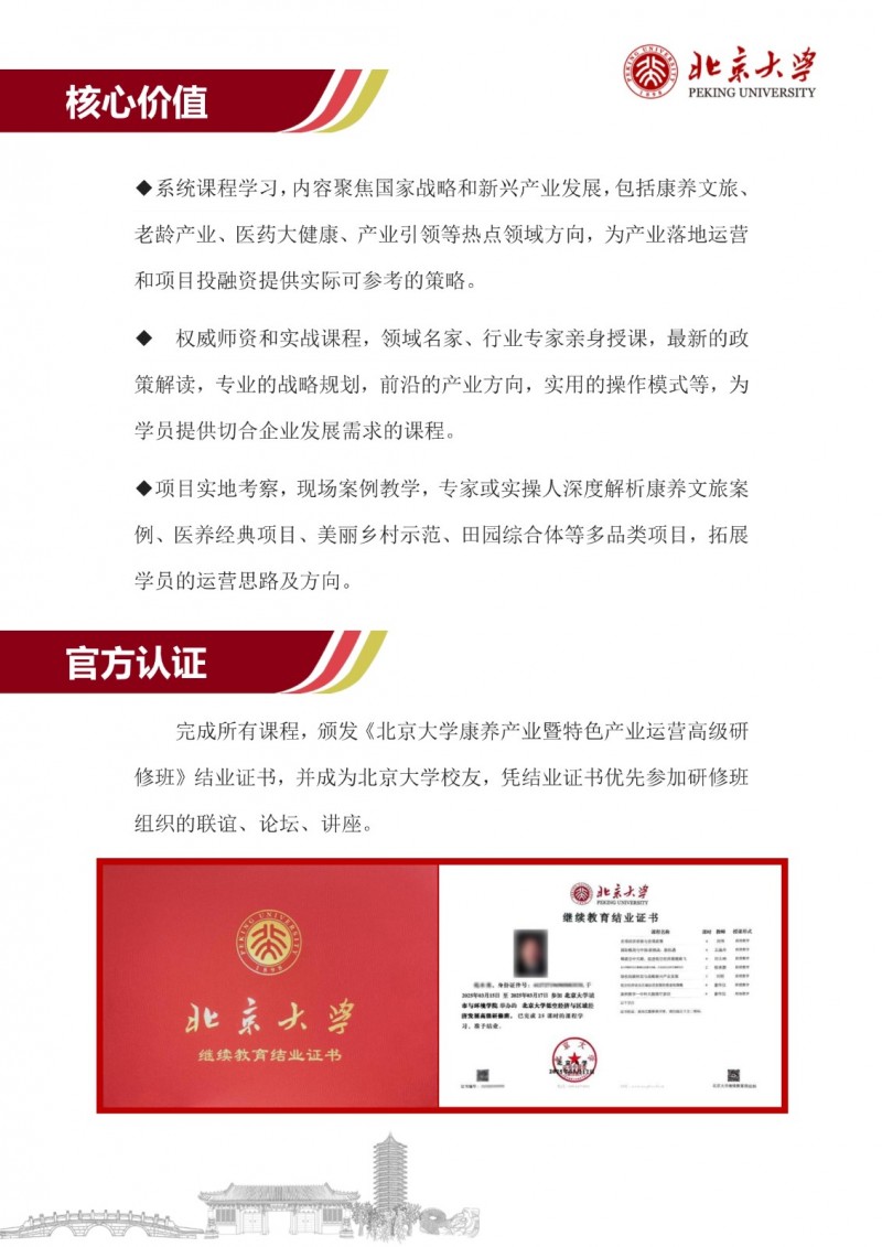 > 北京大学康养产业暨特色产业运营高级研修班2026年招生简章