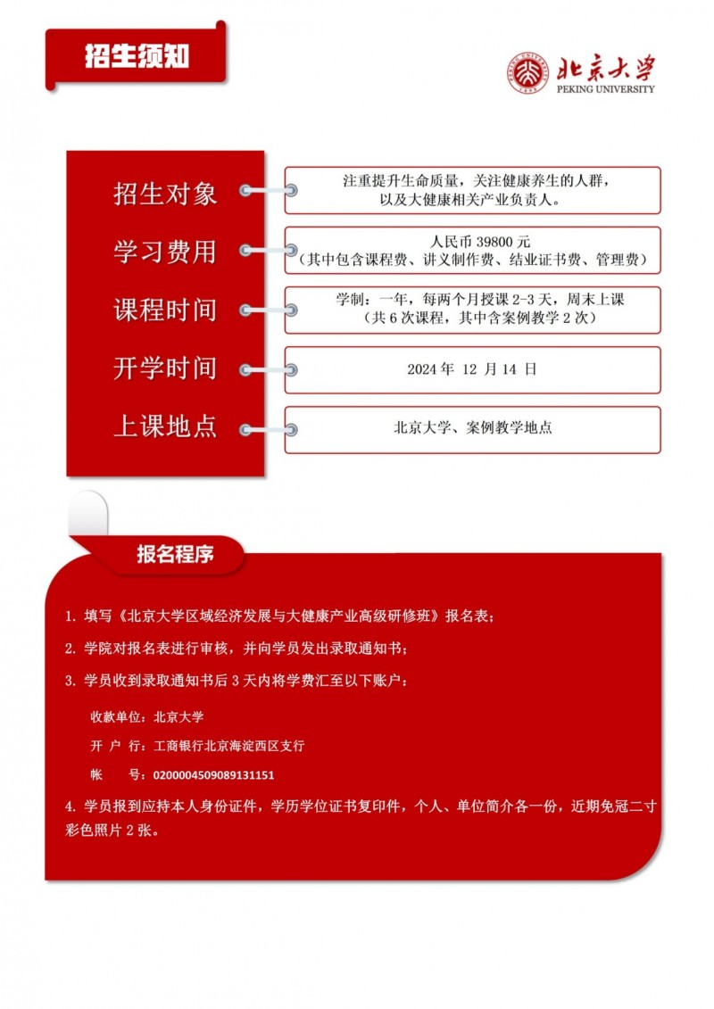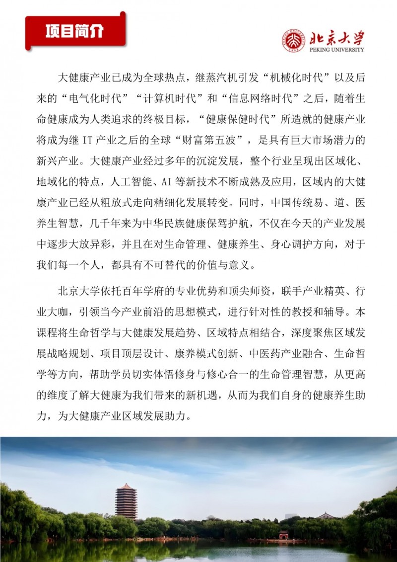 > 北京大学区域经济发展与大健康产业高级研修班2026年招生简章
