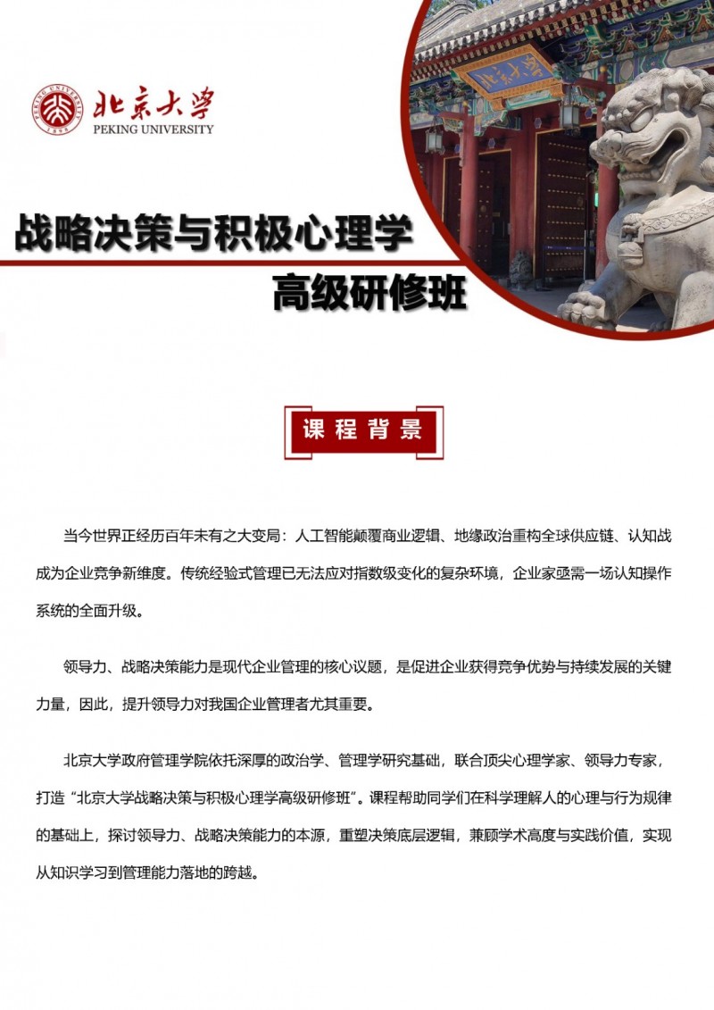 > 北京大学战略决策与积极心理学高级研修班2026年招生简章