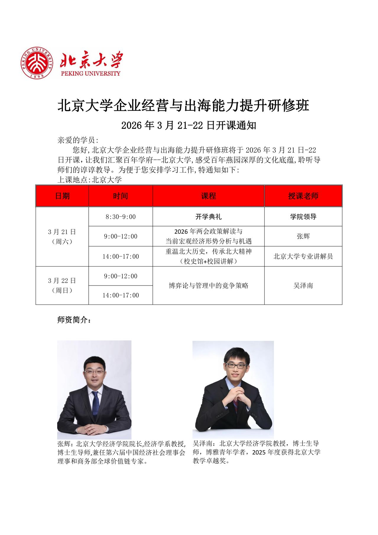 2026年3月21-22日北京大学开课。